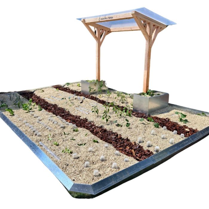 Barrières anti-limaces en acier galvanisé : développées par Quadra Terra , elles empêchent limaces et escargots de rentrer dans l’enceinte du potager sans avoir à utiliser de produit chimique, et retiennent la terre fertile du potager. Fourni : barrières, angles et fixations.